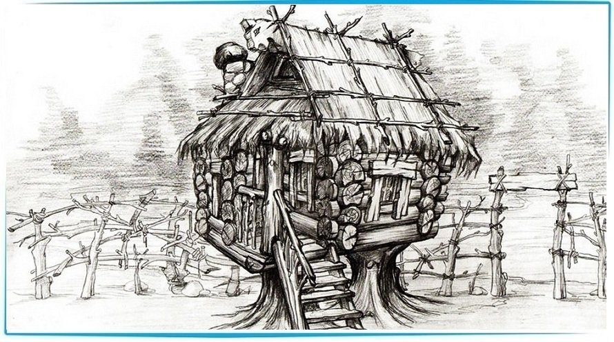 ![Избушка на курьих ножках рисунок]()