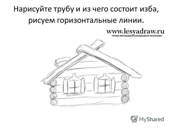 ![Рисование русской избы]()