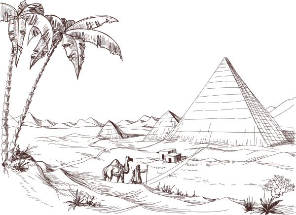 ![Египетские пирамиды в древнем Египте зарисовки]()