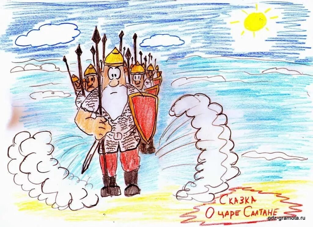 ![Сказка о царе Салтане рисунок 33 богатыря]()