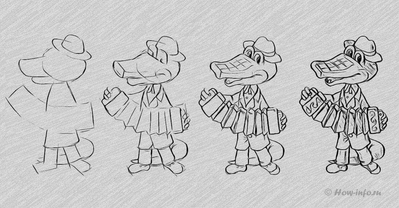 ![Крокодил Гена пошаговое рисование]()