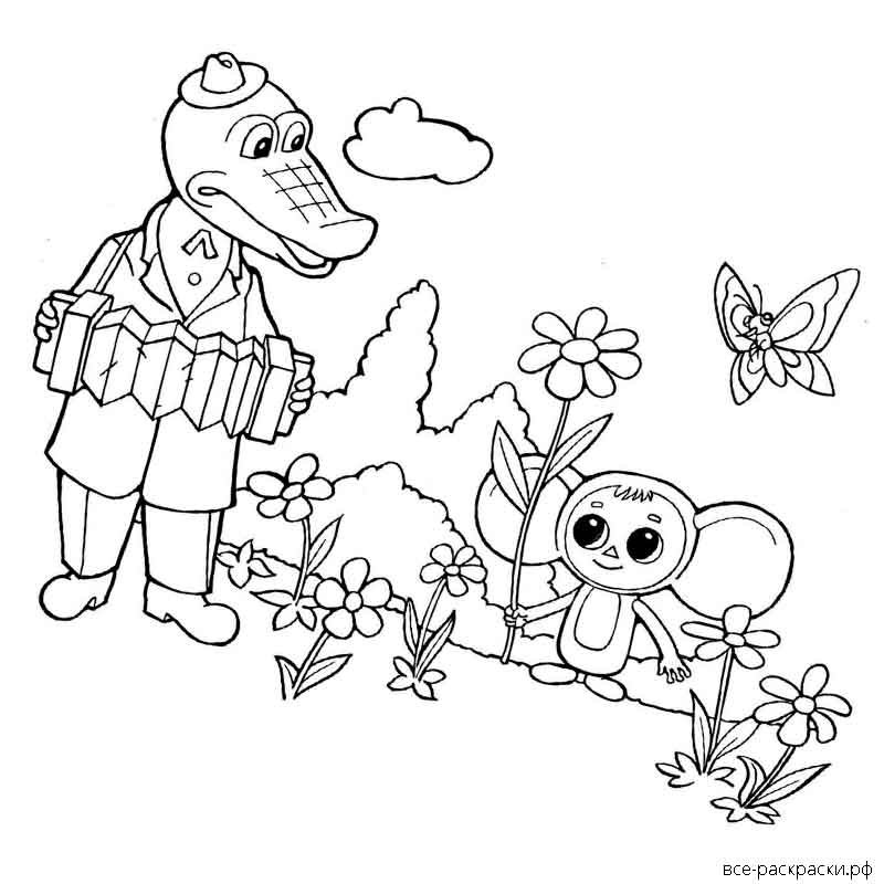 Чебурашка и крокодил Гена раскраски для детей