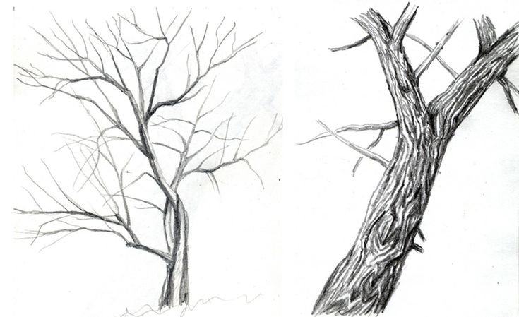 Дерево без листьев карандашом