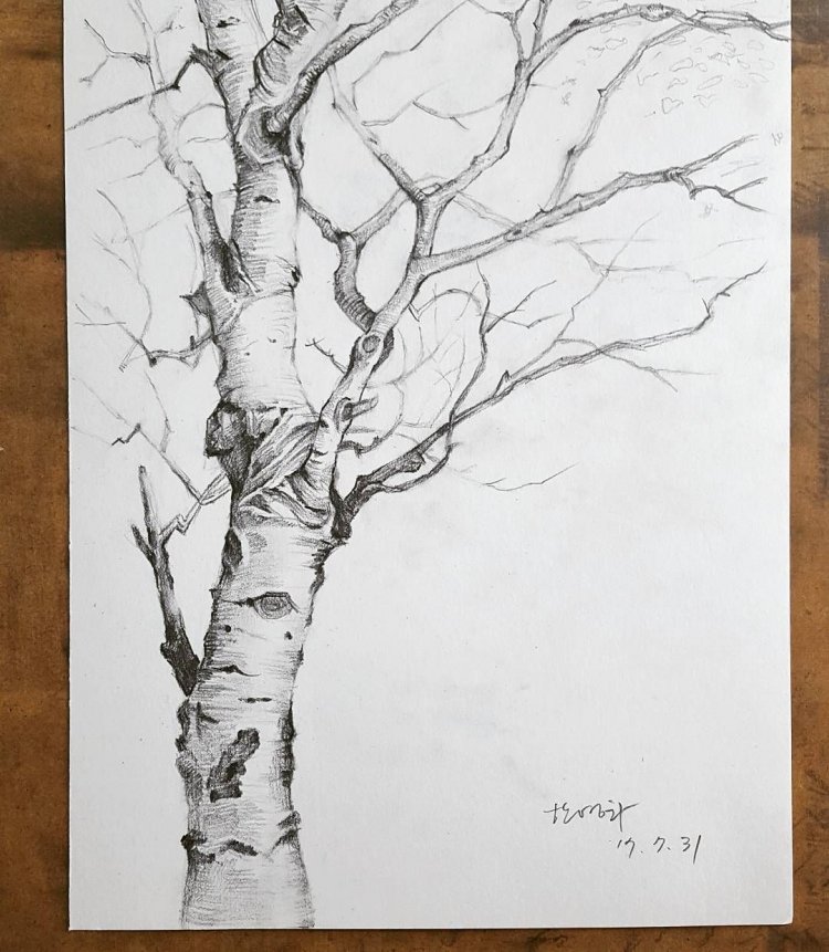 Сухое дерево карандашом