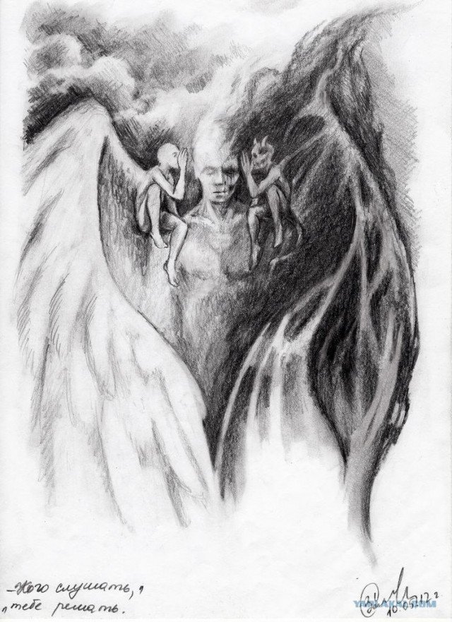 ![Ангел и демон карандашом]()