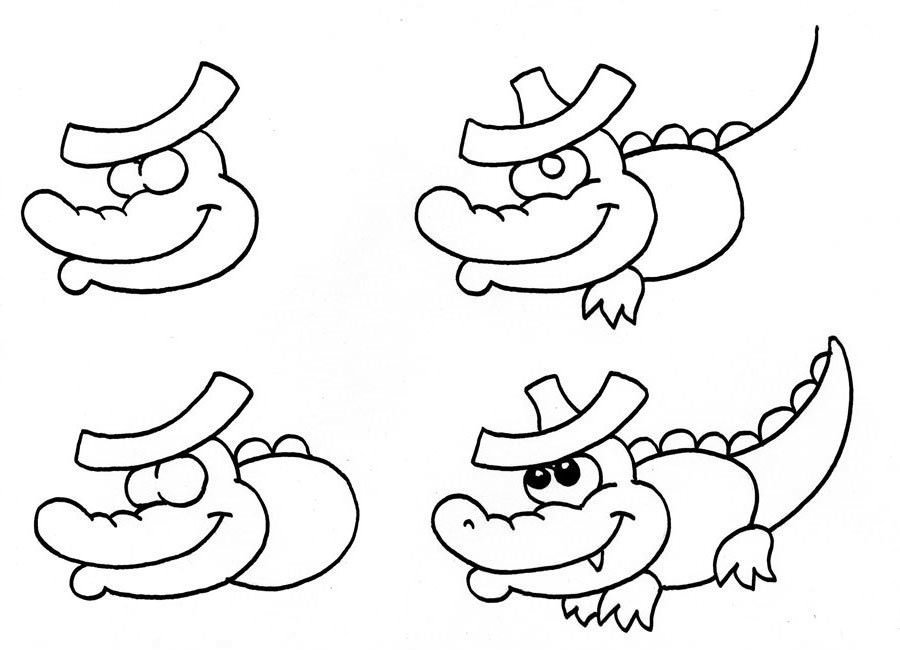 Схема рисования крокодила для дошкольников