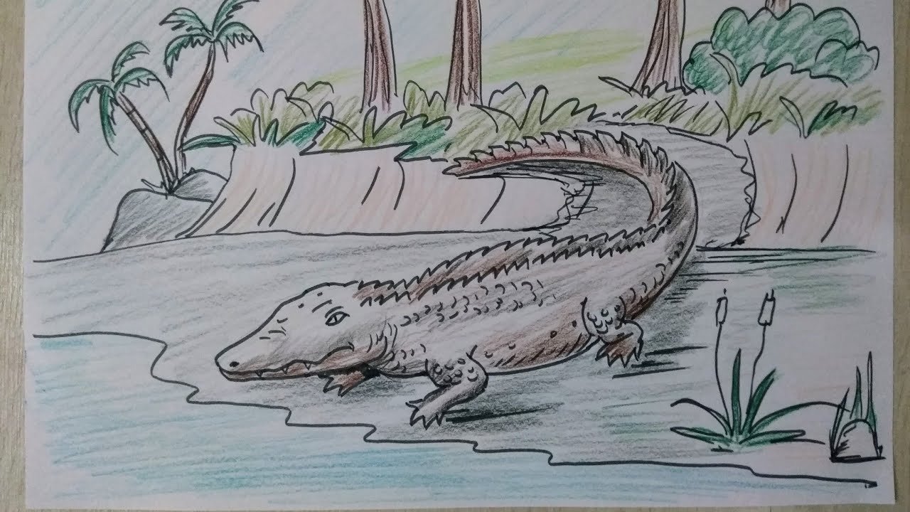 ![Крокодил карандашом]()