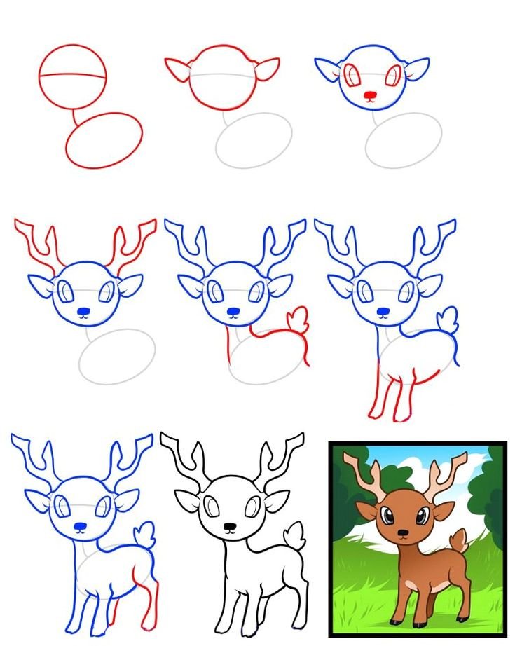 ![Нарисовать оленя поэтапно]()