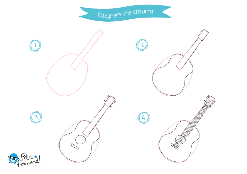 ![Поэтапное рисование гитары]()