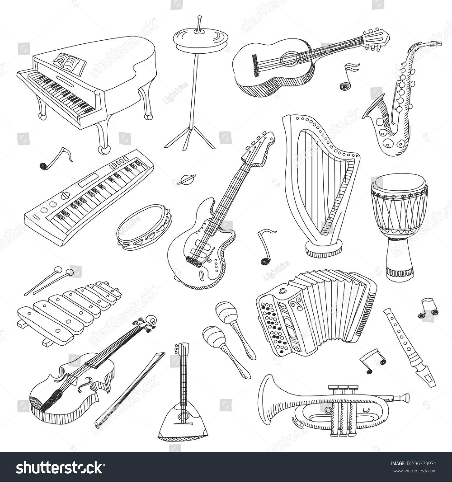 ![Зарисовки музыкальных инструментов]()