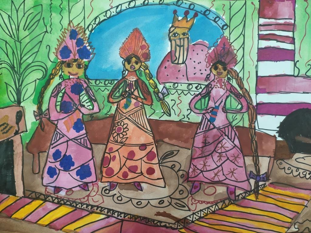 ![Три девицы под окном пряли поздно вечерком рисунок]()