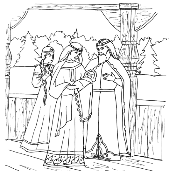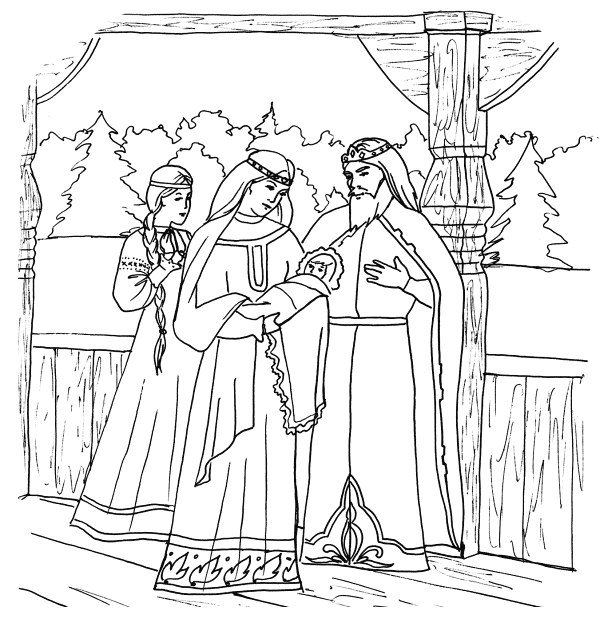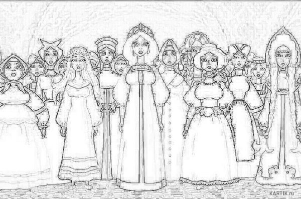 ![Сказка о царе Салтане раскраска три девицы под окном]()