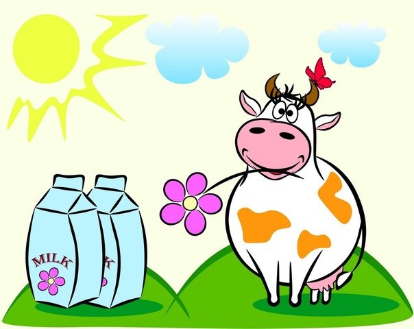 ![Мультяшная корова с молоком]()