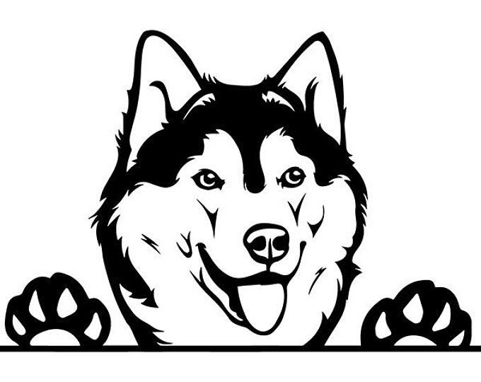 ![Хаски черно белый контур]()