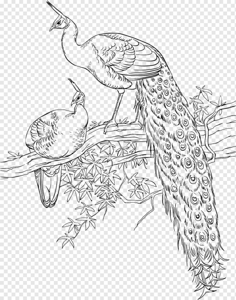 ![Павлин черно белый рисунок]()