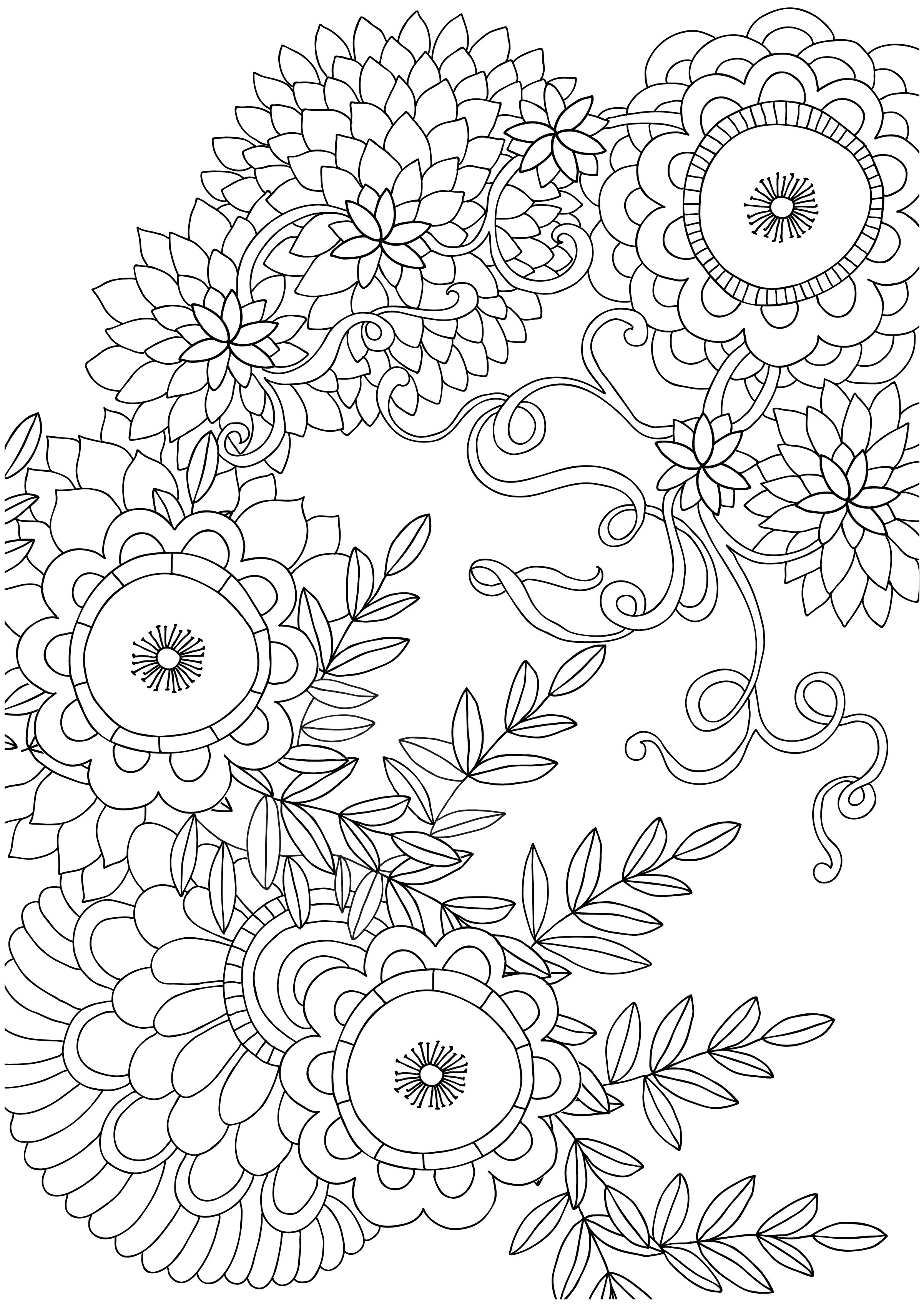 Раскраски для взрослых цветы