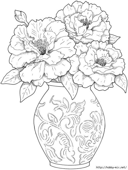![Раскраска цветы в вазе]()