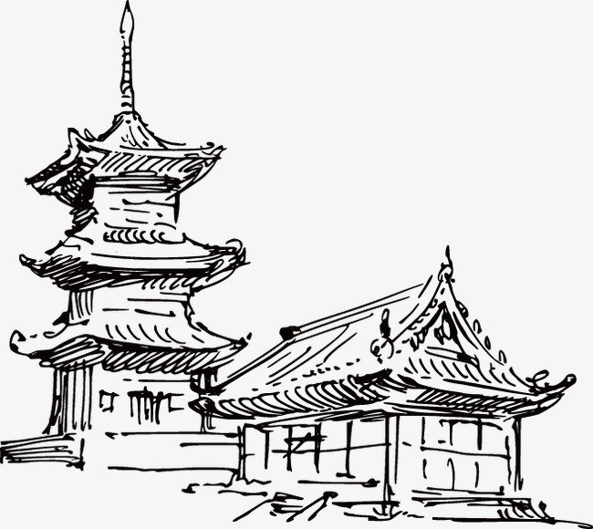 ![Китайская архитектура карандашом]()