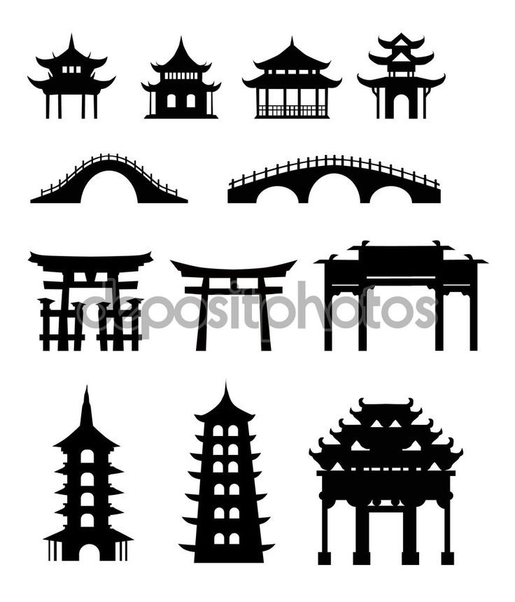![Японские пагоды контур]()