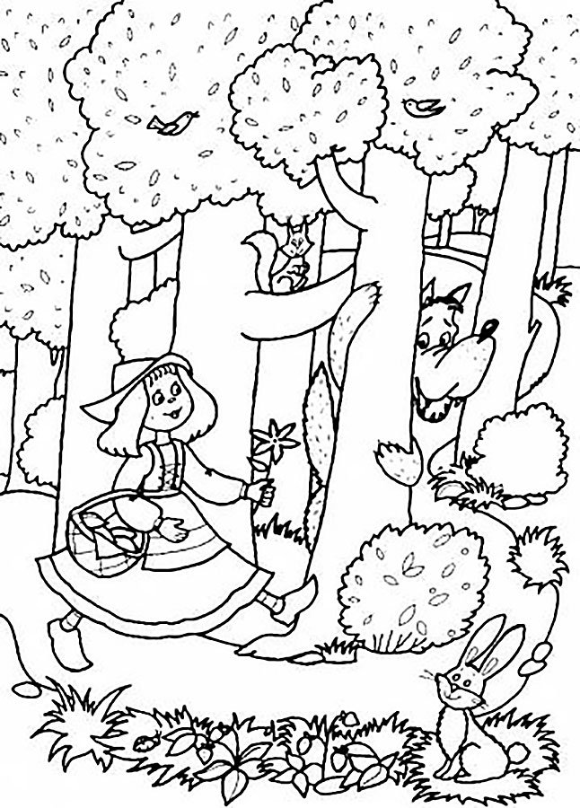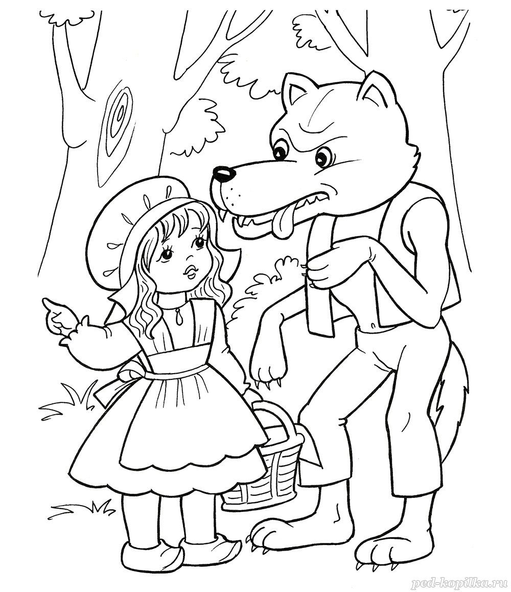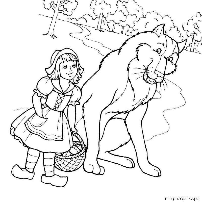 ![Раскраска красная шапочка для детей 4-5 лет]()