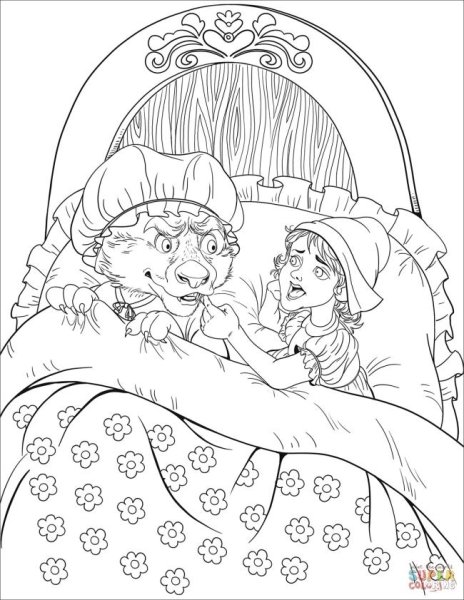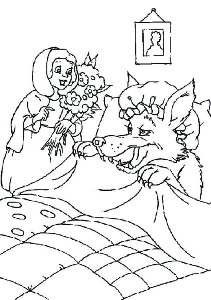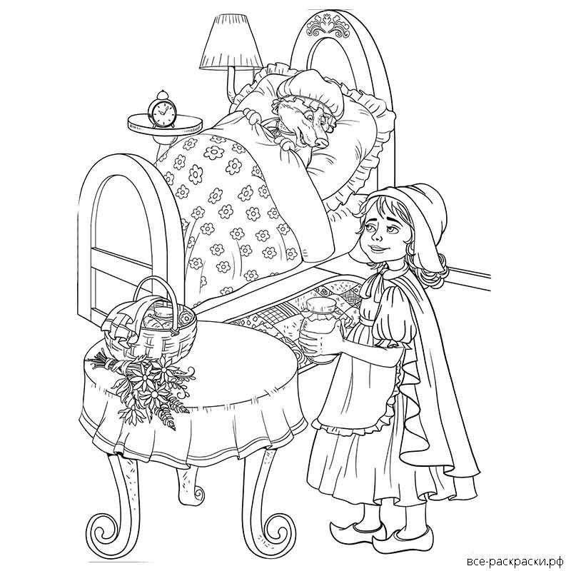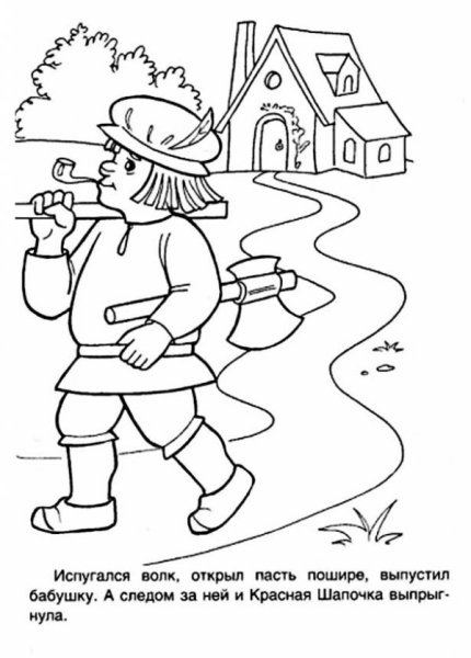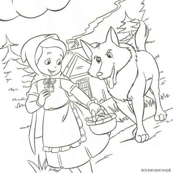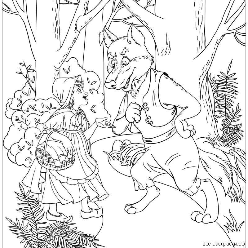 ![Раскраска к сказке красная шапочка Шарль Перро]()