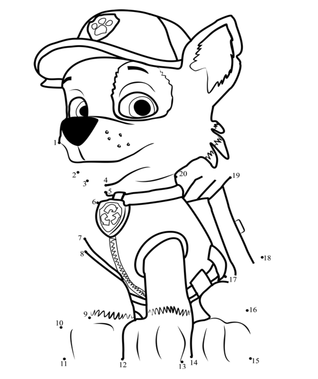 Рокки Щенячий патруль раскраска по точкам