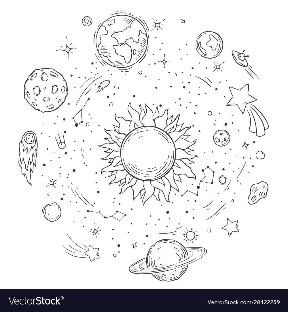 ![Солнечная система черно белая]()