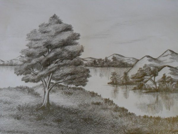 ![Водный пейзаж карандашом]()