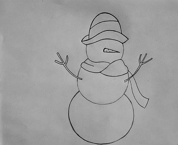 Снеговик рисунок карандашом