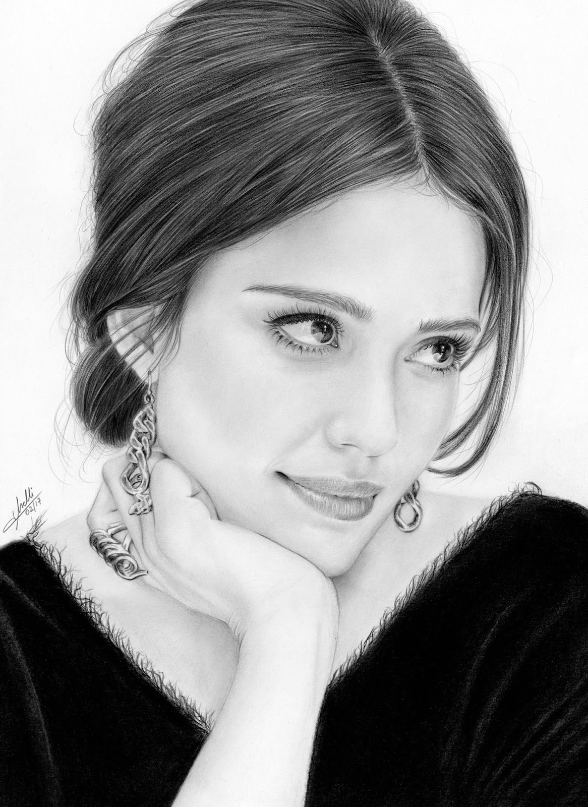 ![Джессика Альба портрет карандашом]()