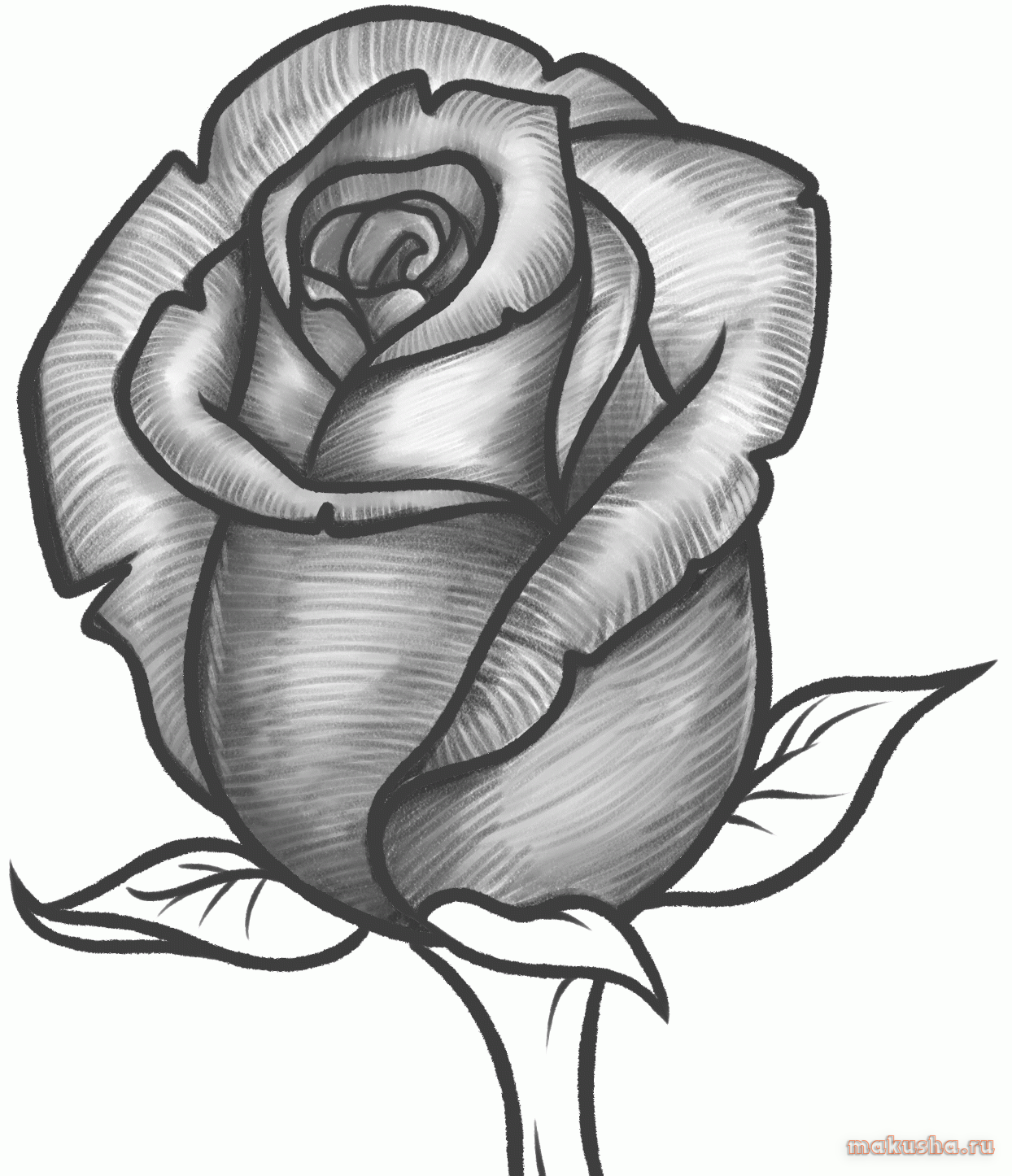 Рисунок розы карандашом для срисовки