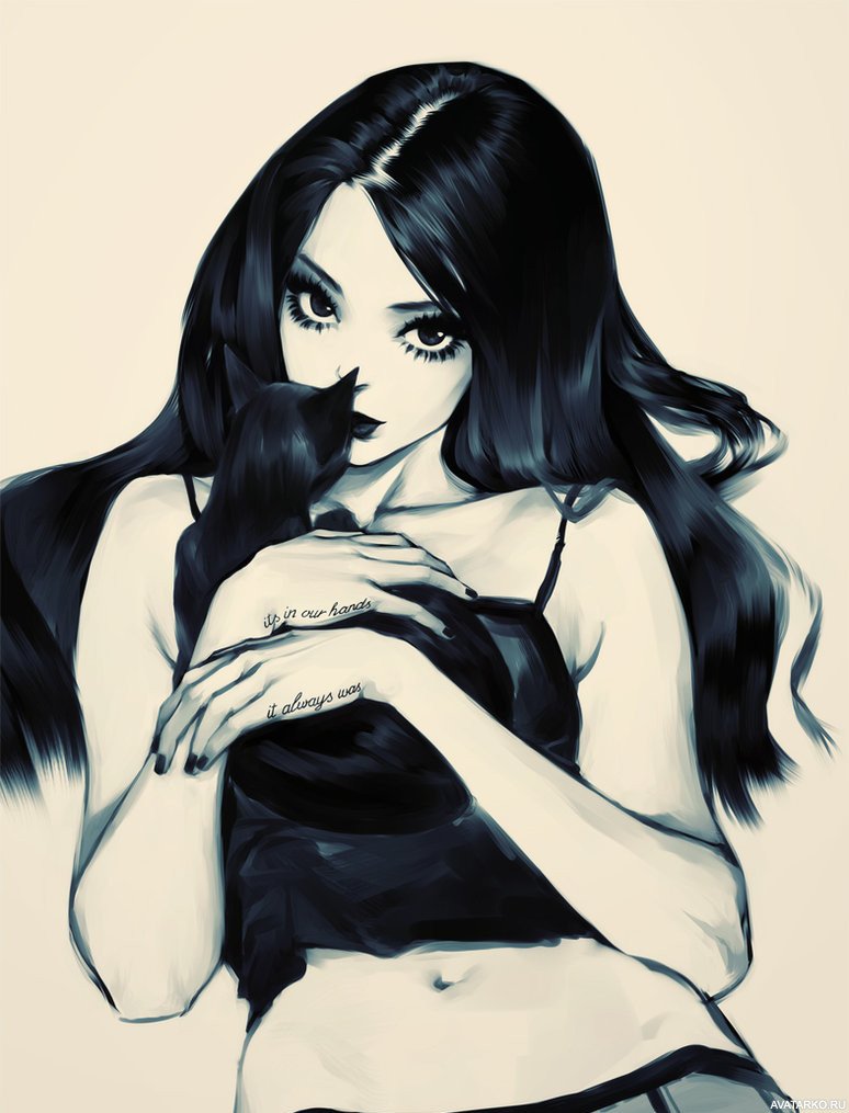![Девушка с черными волосами арт]()