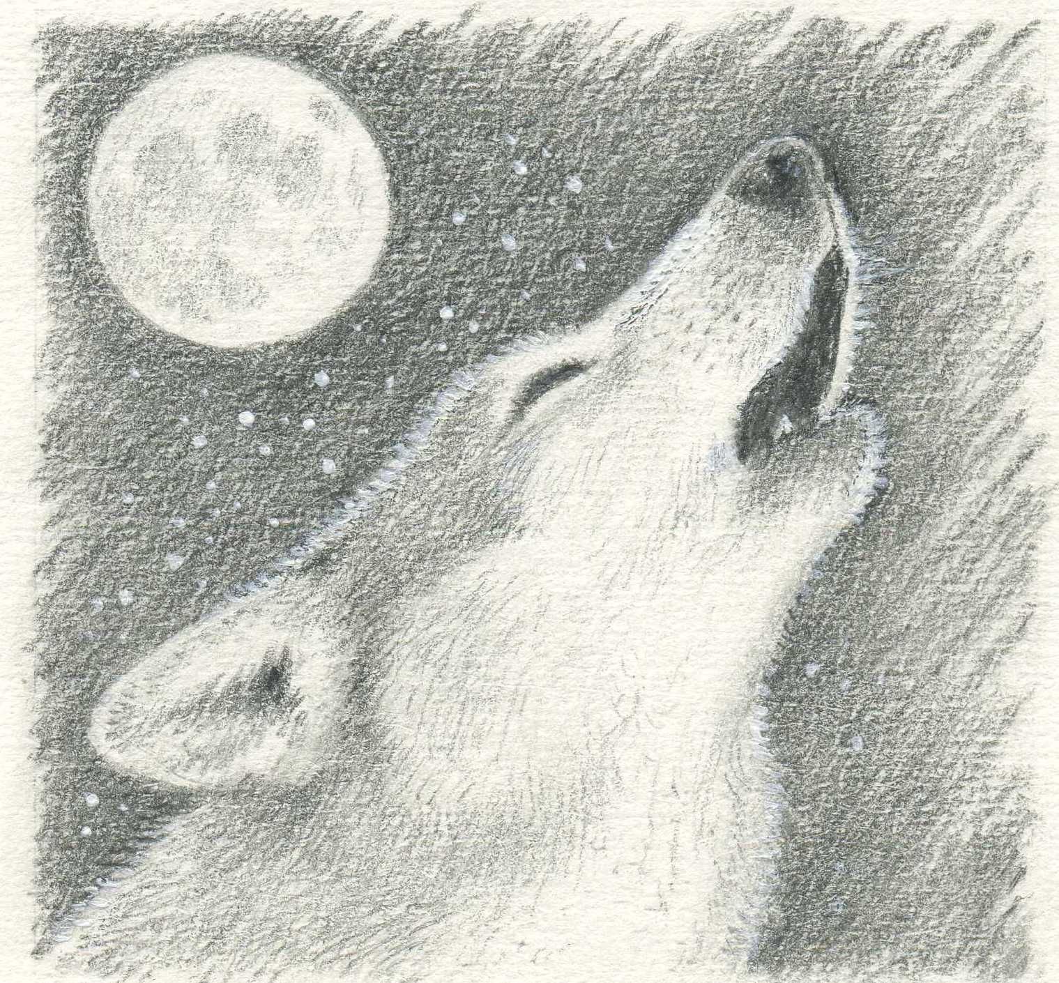 ![Волк воет на луну рисунок карандашом]()