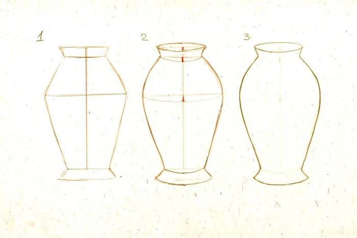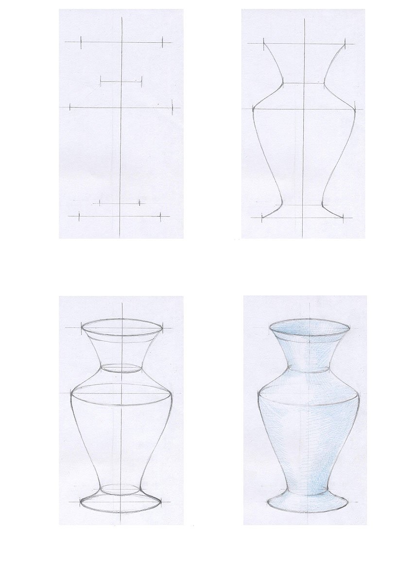 ![Этапы рисования вазы]()