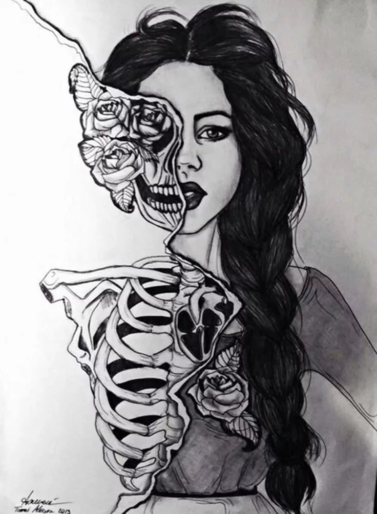![Рисунки скелета для срисовки легкие]()