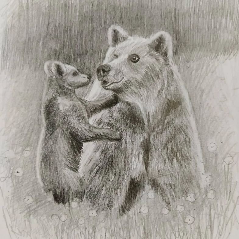Два медведя карандашом