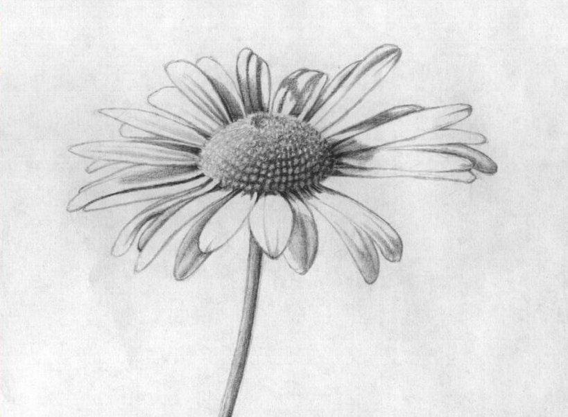 ![Зарисовка ромашки карандашом]()