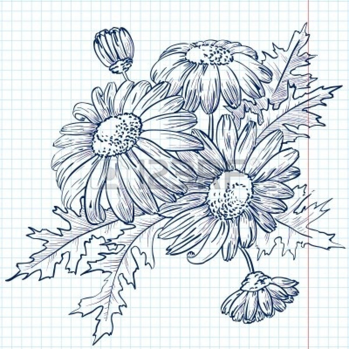 ![Букет ромашек карандашом]()