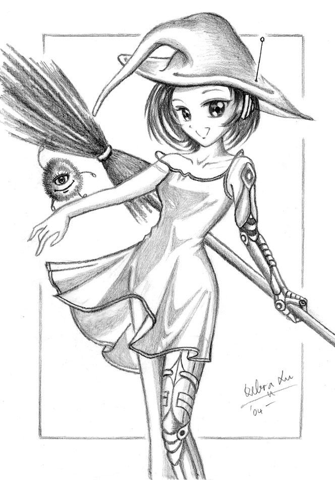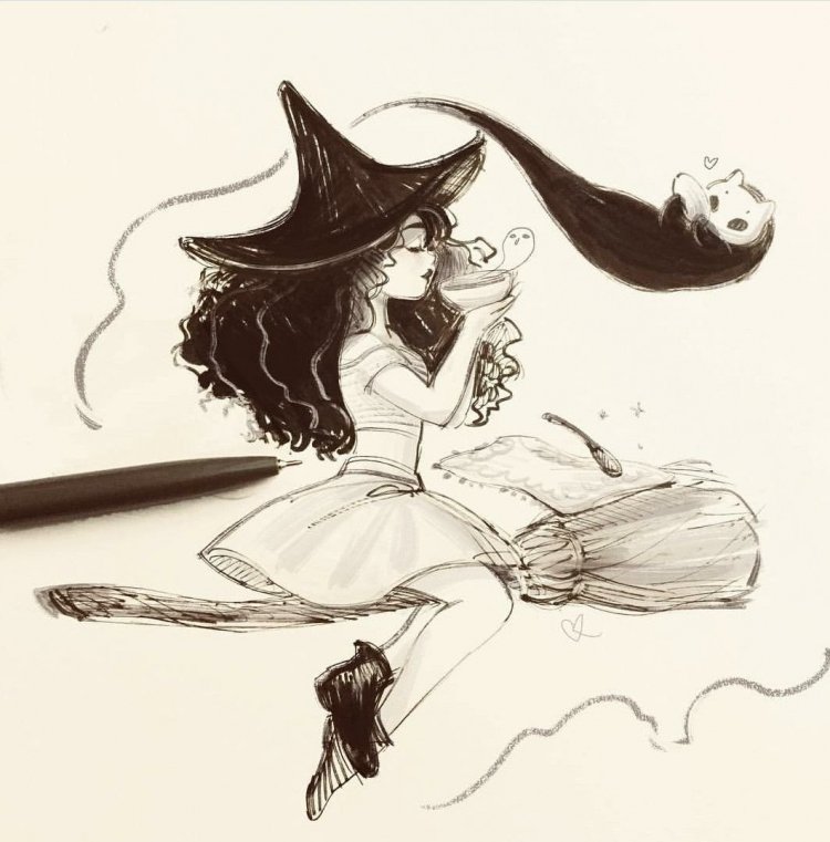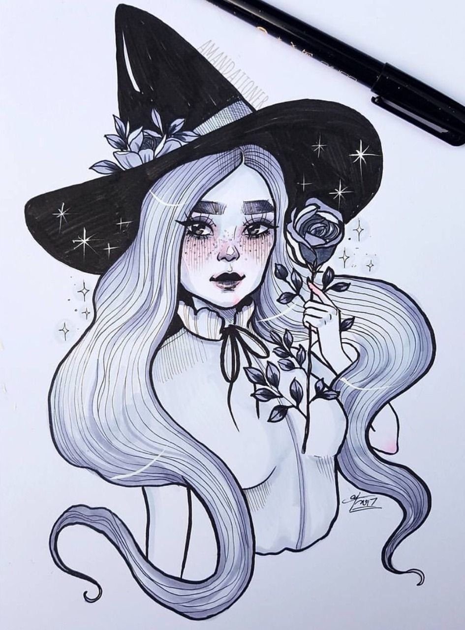 ![Девушка ведьма карандашом]()