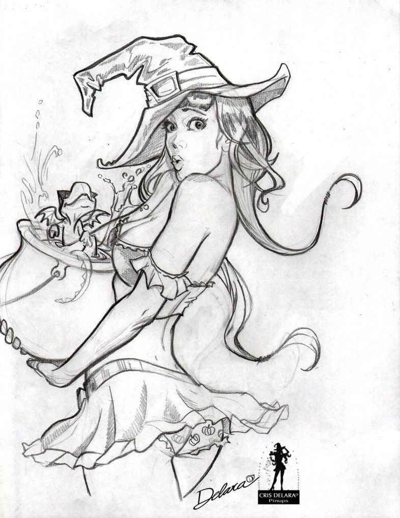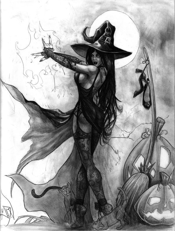 ![Ведьма скетч карандашом]()