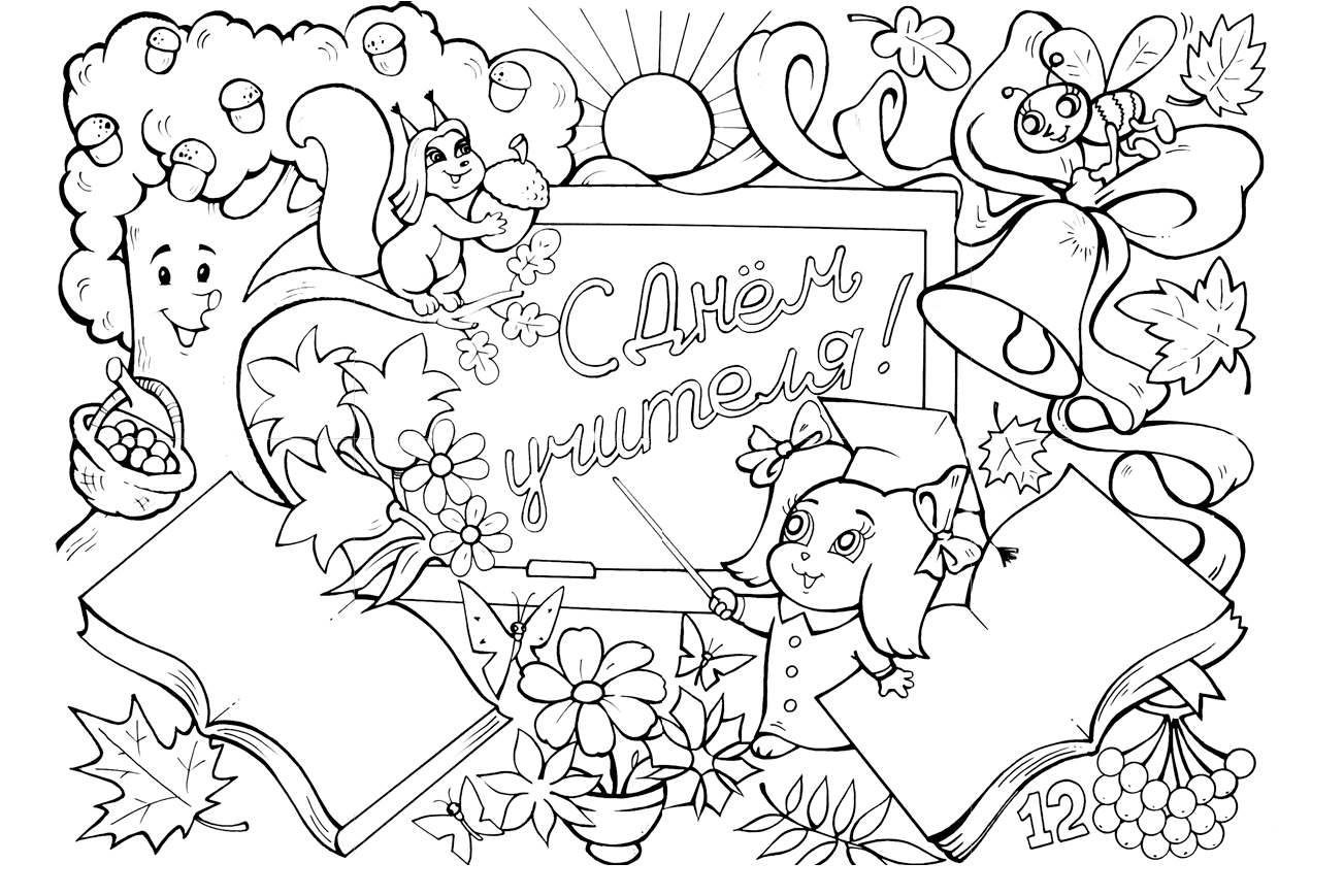 С днем учителя картинки для раскрашивания