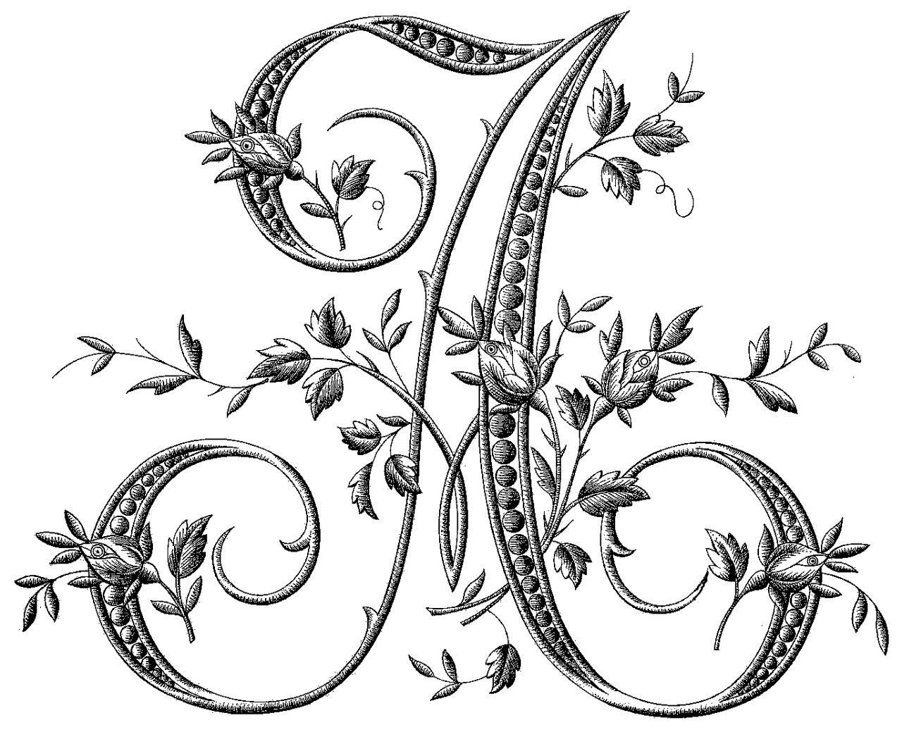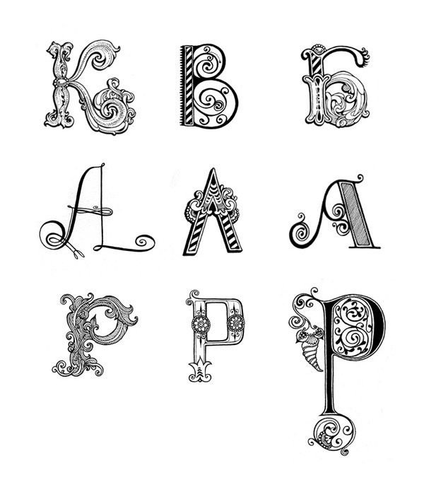 ![Заглавные буквы с вензелями]()