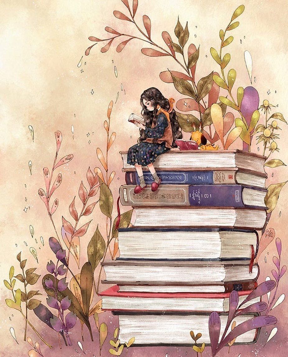 ![Девушка с книгой арт]()