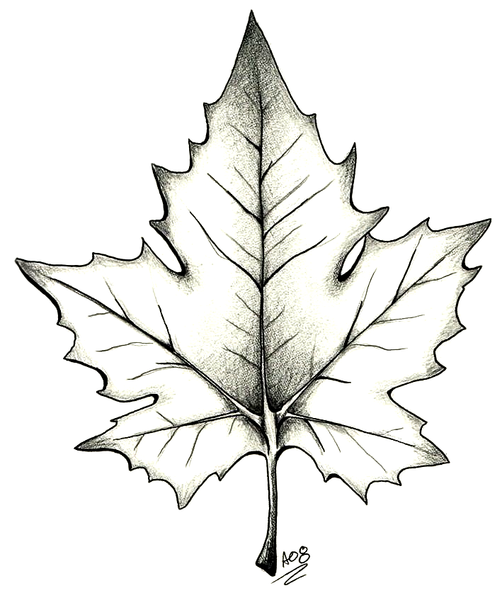 ![Лист клёна рисунок карандашом]()