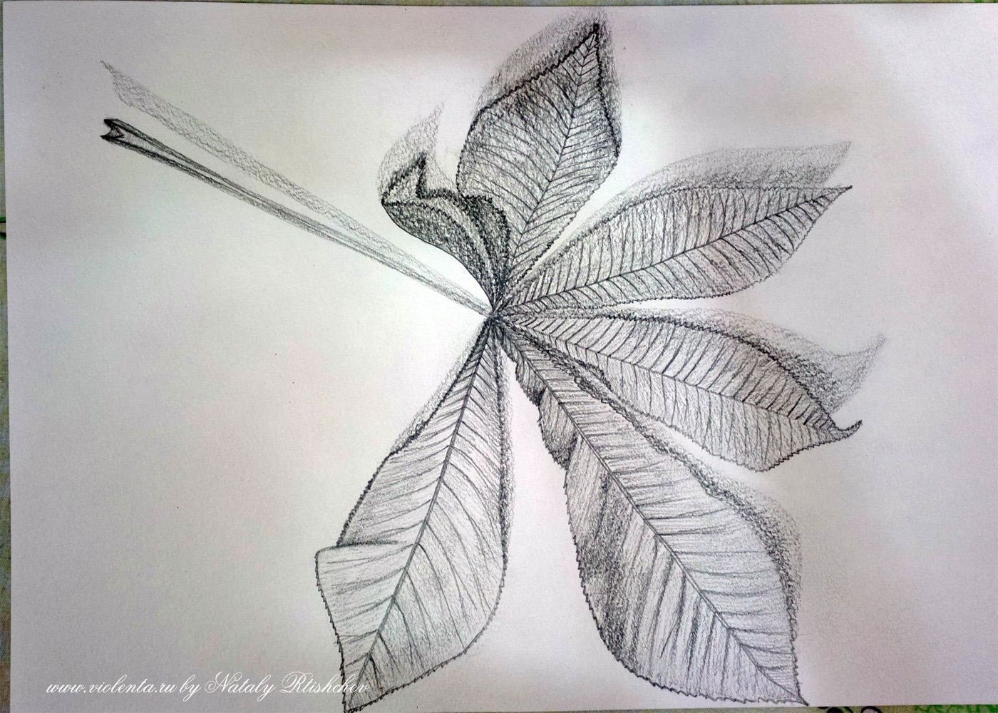 ![Лист клёна рисунок карандашом поэтапно]()