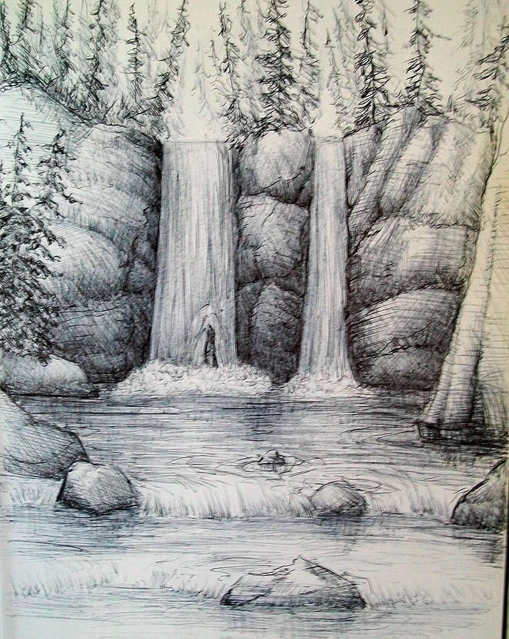![Водопад рисунок карандашом]()