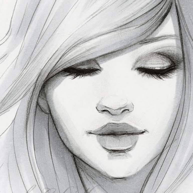 ![Зарисовки девушек карандашом]()