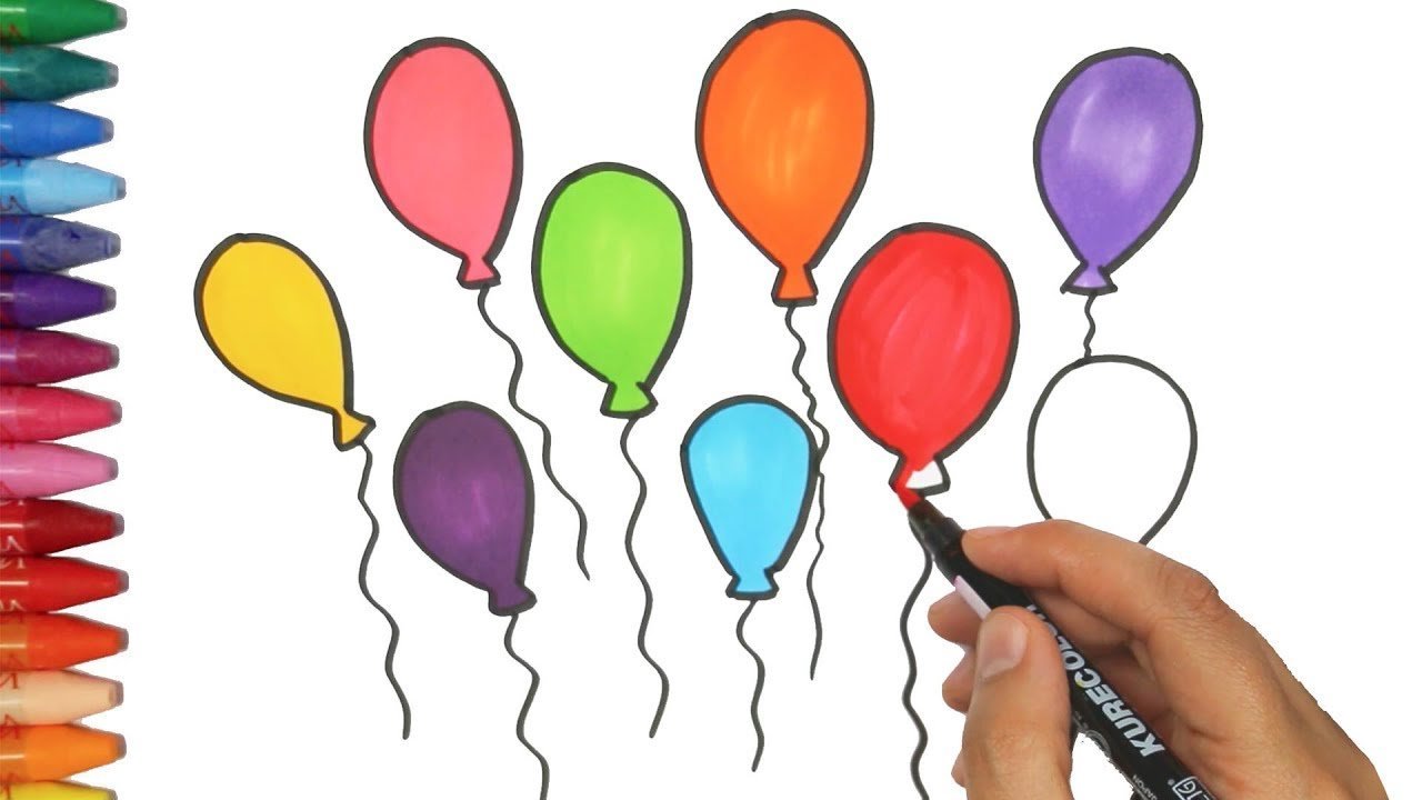 ![Рисование цветные воздушные шары]()