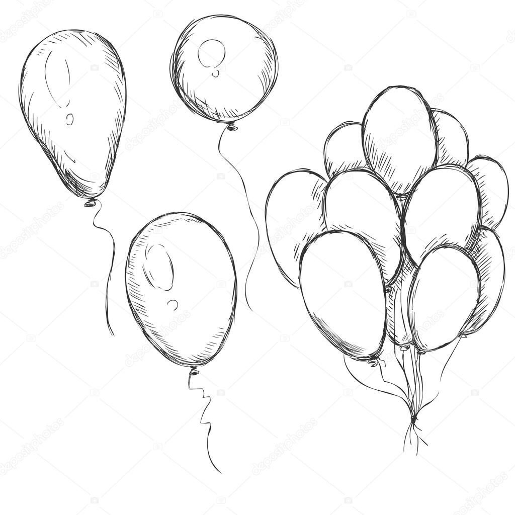 Воздушные шары рисунок карандашом