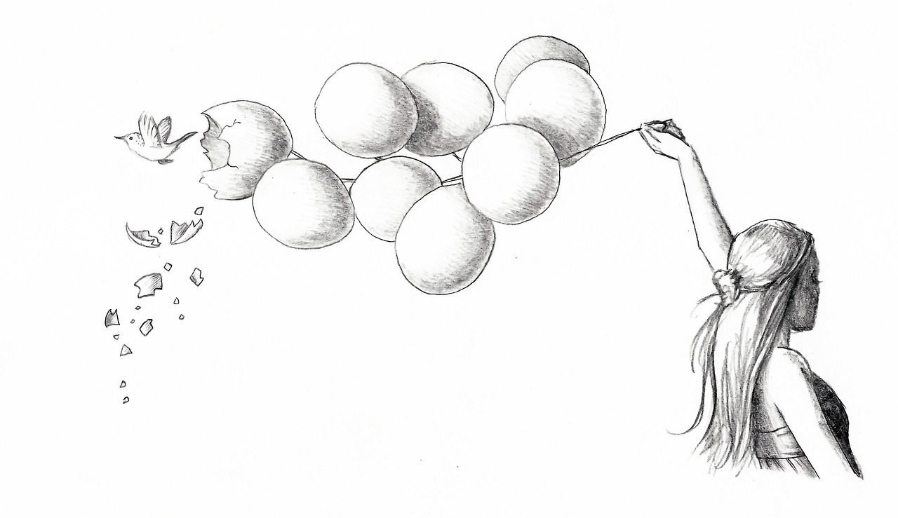 Девушка с шариками скетч